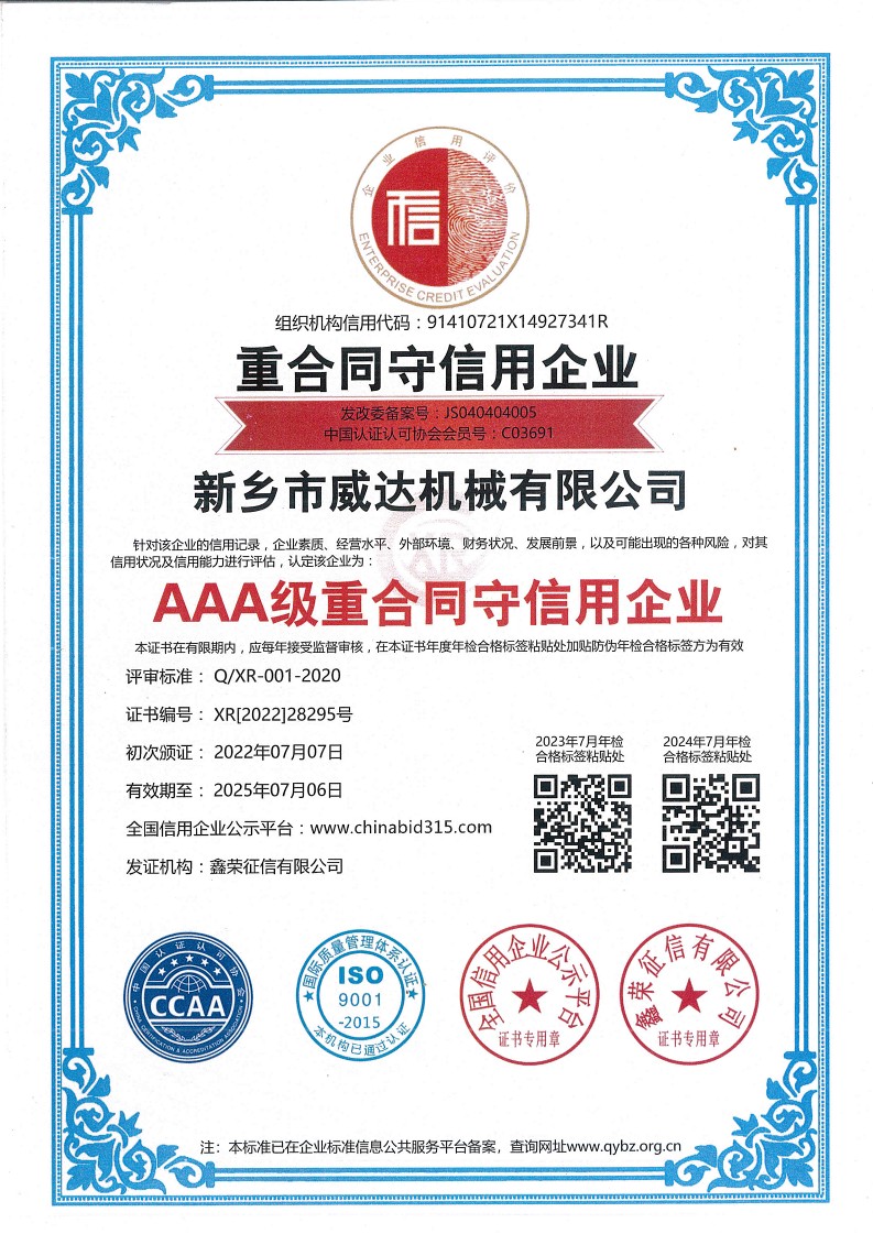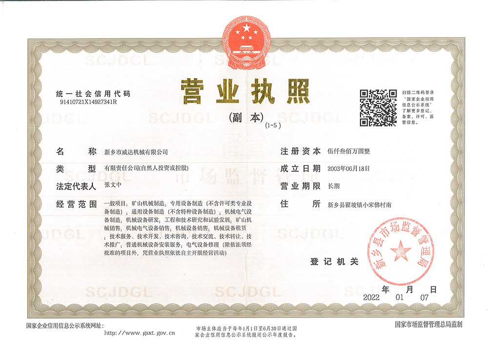 新鄉(xiāng)市威達(dá)機(jī)械有限公司,位于中原腹 地、黃河之濱—河南省新鄉(xiāng)縣小冀。濱臨京廣鐵路,107國(guó)道,距省會(huì)鄭州70Km,地理位置優(yōu)越,交通、通訊設(shè)施便利。公司成立于1997年6月,占地面積45000平方米,車間面積30000平方米,注冊(cè)資金5300萬(wàn)元,職工275人,其中技術(shù)人員35余人。經(jīng)營(yíng)范圍:礦山機(jī)械制造;專用設(shè)備制造;通用設(shè)備制造;機(jī)械電氣設(shè)備制造;機(jī)械設(shè)備研發(fā);工程和技術(shù)研究和試驗(yàn)發(fā)展;礦山機(jī)械銷售;機(jī)械電氣設(shè)備銷售;機(jī)械設(shè)備銷售;機(jī)械設(shè)備租賃;技術(shù)服務(wù)、技術(shù)開發(fā)、技術(shù)咨詢、技術(shù)交流、技術(shù)轉(zhuǎn)讓、技 術(shù)推廣;普通機(jī)械設(shè)備安裝服務(wù);電氣設(shè)備修理;產(chǎn)品主要用于煤炭、礦山、焦炭、鋼鐵、水電、火電、化工、水泥等行業(yè),產(chǎn)品銷往國(guó)內(nèi)外。